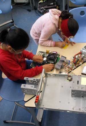 In den ersten Stunden haben die Kinder Computer zerlegt und notiert, welche Funktionen die wichtigsten Teile haben: